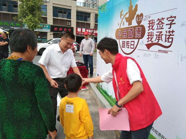 為進(jìn)一步學(xué)習(xí)宣傳貫徹落實(shí)《新時(shí)代公民道德建設(shè)實(shí)施綱要》,培育文明風(fēng)尚,倡導(dǎo)時(shí)代新風(fēng),持續(xù)提高公民道德建設(shè)水平,提升鄉(xiāng)風(fēng)文明程度,在全國(guó)第二十個(gè)“公民道德宣傳日”到來(lái)之際,無(wú)為市無(wú)城鎮(zhèn)新時(shí)代文明實(shí)踐所發(fā)動(dòng)志愿者在無(wú)城小區(qū)廣場(chǎng)開展“公民道德宣傳日”集中宣傳活動(dòng)。