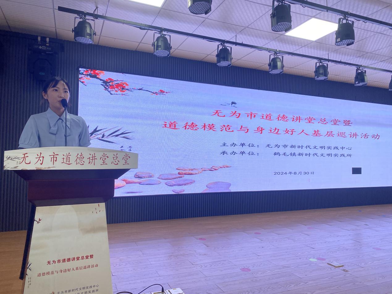 8月30日下午,無為市2024年第6期道德講堂總堂暨道德模范與身邊好人基層巡講活動在鶴毛鎮(zhèn)新時代文明實踐所舉辦。市文明辦、鶴毛鎮(zhèn)政府機關(guān)干部及各村(社區(qū))群眾共80余人參加活動。