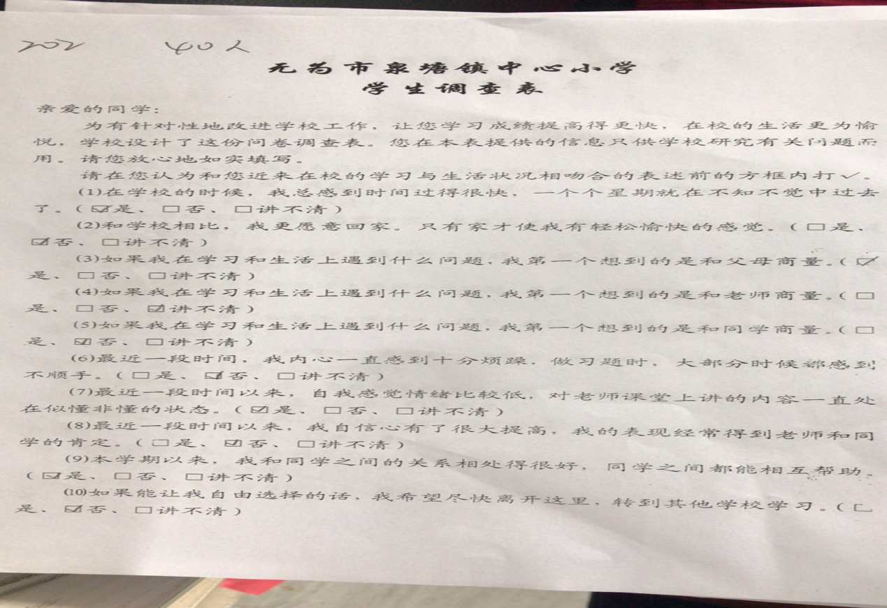 泉塘鎮(zhèn)中心小學開展學生心理狀況問卷調查。