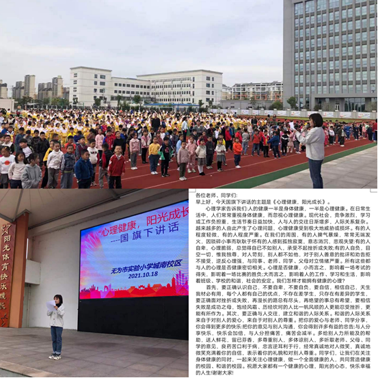 實驗小學城南校區(qū)開展國旗下講話宣傳心理健康知識。