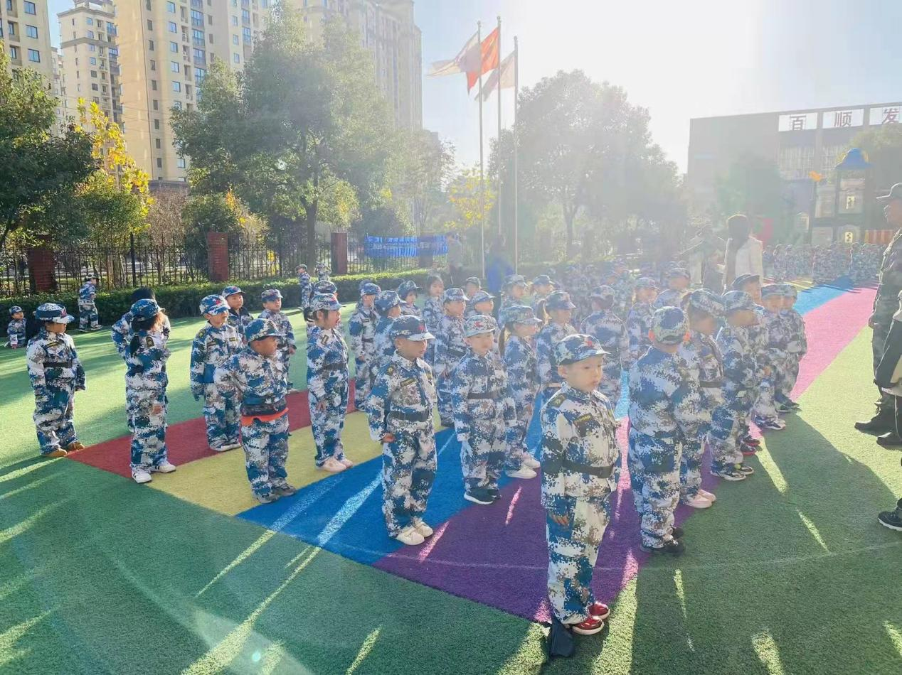 本次軍事訓(xùn)練課程在教官鏗鏘有力的“立正——稍息——”聲中拉開(kāi)序幕。八個(gè)連隊(duì)的小小兵們?cè)诮坦俚膸ьI(lǐng)下,學(xué)習(xí)和訓(xùn)練站軍姿、踢正步、敬軍禮、握鋼槍等軍事課程。無(wú)論是汗流浹背,還是跌倒摔傷,孩子們都不喊苦不喊累,咬牙堅(jiān)持,堅(jiān)定地完成訓(xùn)練課程。一張張紅彤彤的小臉上寫著認(rèn)真、堅(jiān)毅和不服輸!
