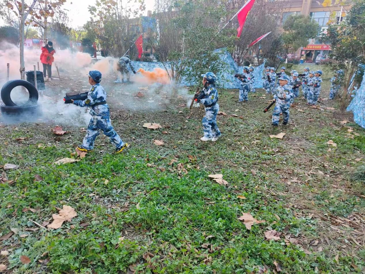 訓(xùn)練課程結(jié)束后,教官還組織小小兵們進(jìn)行了軍事演習(xí)——抓歹徒救人質(zhì),給孩子們樹(shù)立了“苦練殺敵本領(lǐng),捍衛(wèi)人民利益”的國(guó)防教育觀念。