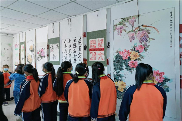 活動(dòng)現(xiàn)場(chǎng),鎮(zhèn)關(guān)工委主任洪霞對(duì)書畫展嘉賓作依次介紹,后由主任科員梅百西講話致辭,最后市關(guān)工委副主任徐啟來致開幕詞并預(yù)祝本次書畫展取得圓滿成功。滿載著愛黨愛國(guó)的深切情懷,社會(huì)各界人士和鎮(zhèn)中心校師生在一幅幅書畫前緩步觀賞、交口稱贊。