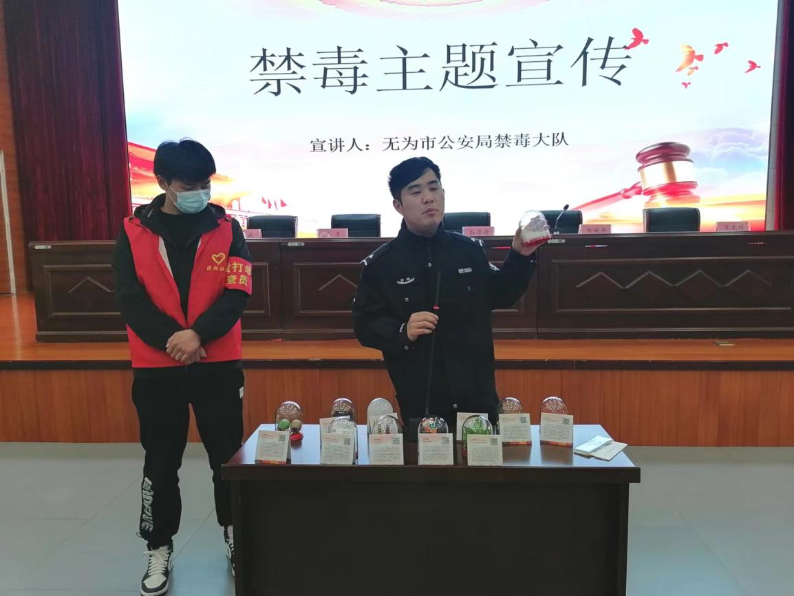 “避免校園犯罪”遠(yuǎn)離毒品。"同學(xué)們,這就是所謂‘搖頭丸’,無(wú)論顏色還是形狀都和糖果相似,吃了后使大腦皮層異常興奮,嚴(yán)重?fù)p傷我們的身體..."。無(wú)為市禁毒宣傳民警魏巍同志以深入淺出、生動(dòng)細(xì)致的講解,讓同學(xué)們興趣十足,感受深刻,一張張朝氣蓬勃的面孔充滿了對(duì)禁毒知識(shí)的新奇和渴求,這種互動(dòng)啟發(fā)式的宣傳活動(dòng)讓禁毒知識(shí)真正深入青少年的心里。民警通過(guò)展示禁毒宣傳展板、毒品仿真教具的方式,使同學(xué)們對(duì)毒品危害有了更深刻的認(rèn)識(shí),增強(qiáng)了青少年學(xué)生識(shí)毒、防毒、拒毒的意識(shí)和能力,筑牢校園禁毒防線。