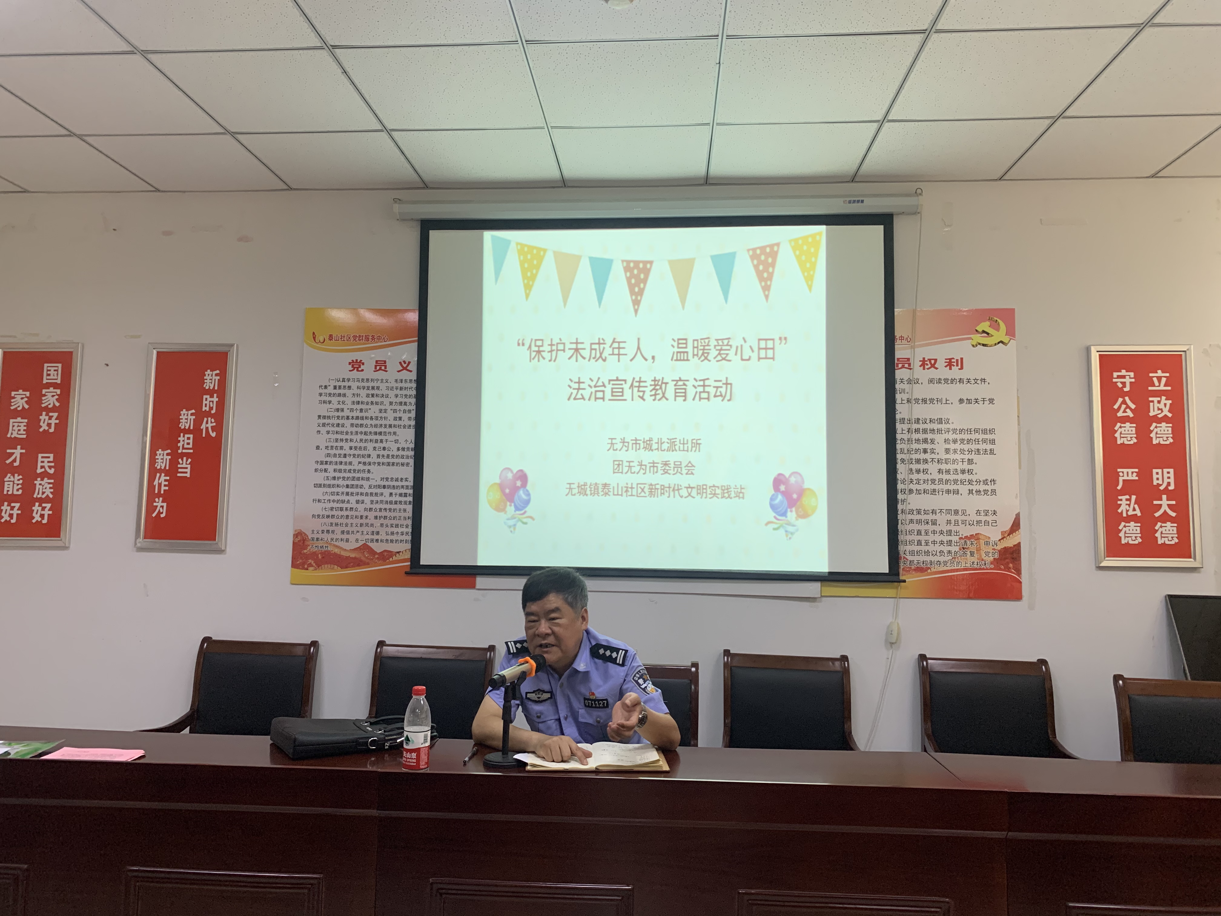 暑假已至,為進(jìn)一步提高社區(qū)未成年人的法治素養(yǎng),增強(qiáng)轄區(qū)未成年人的法律知識(shí)和自我保護(hù)能力,泰山社區(qū)于7月3日上午在社區(qū)三樓新時(shí)代文明實(shí)踐站舉行“保護(hù)未成年人,溫暖愛心田”為主題的未成年人法治宣傳教育專題講座。社區(qū)特邀請(qǐng)無為市城北派出所方咸?hào)|所長(zhǎng)親情授課。