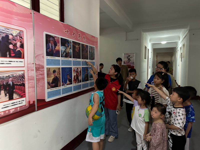 “邱少云為了不暴露潛伏目標(biāo),為了勝利,他忍受烈火燒身的劇痛,一動不動,將雙手深深地插進泥土里,身體緊緊地貼著地面,直至壯烈犧牲……”隨著大學(xué)生志愿者李酉茜的講解,讓孩子們感受中國人民英勇不屈、頑強斗爭的民族精神。