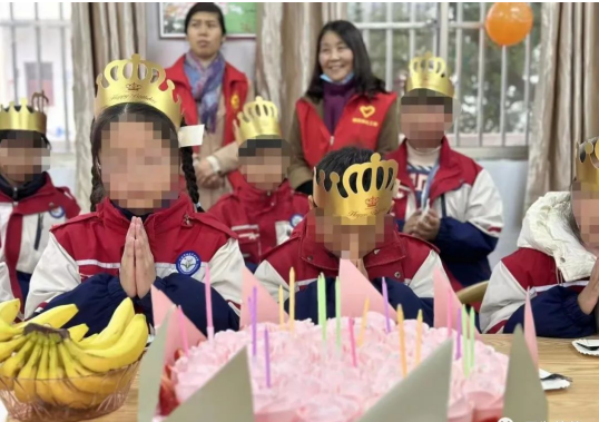 隨后,來到了孩子們最期待的環(huán)節(jié)——集體過生日。志愿者們帶領(lǐng)留守兒童們來到未保站,該站點是由赫店鎮(zhèn)社工站、未保站聯(lián)合中心小學共同建設的,主要為未成年人提供日常關(guān)愛、心理輔導、科技活動等專業(yè)化服務。