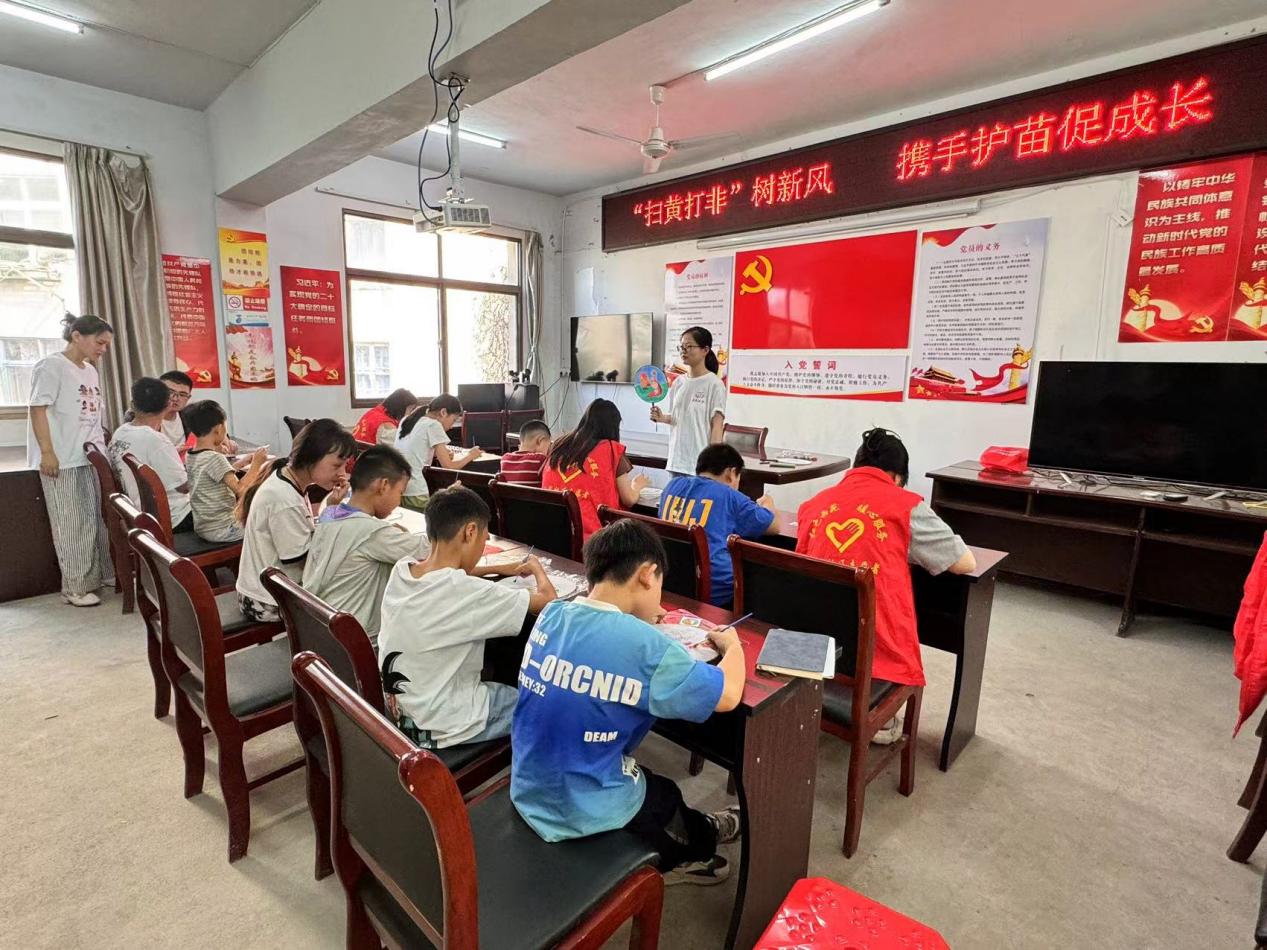 活動在社區(qū)會議室舉行,吸引了眾多居民的參與,特別是青少年兒童。在大學生志愿者的指導下,孩子們揮動畫筆,在漆扇上創(chuàng)作出一幅幅色彩斑斕、主題鮮明的畫作。這些作品不僅展現(xiàn)了孩子們的想象力和創(chuàng)造力,也傳遞了健康、積極向上的信息。