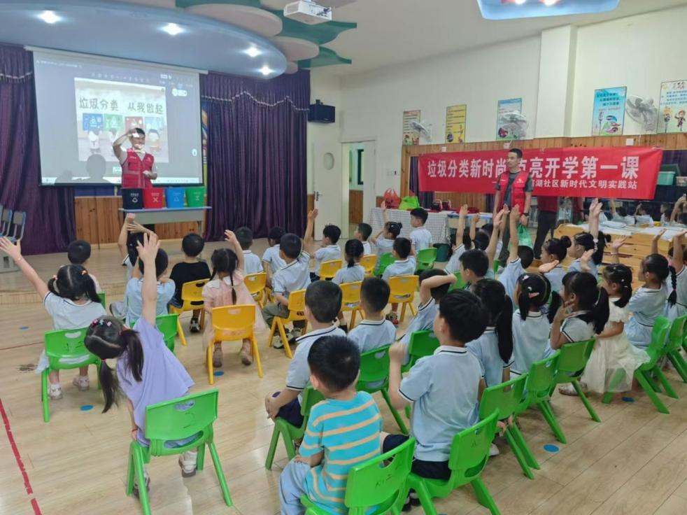 9月2日,香榭麗苑幼兒園迎來(lái)了一堂別開(kāi)生面的開(kāi)學(xué)第一課——“垃圾分類(lèi),從我做起”?;顒?dòng)在濱湖社區(qū)志愿者的熱情參與下溫馨啟幕,標(biāo)志著“社區(qū)志愿助啟航”的美好開(kāi)始。