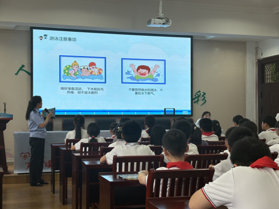 活動還穿插了防溺水、防詐騙、垃圾分類知識小問答環(huán)節(jié),妙趣橫生的互動形式瞬間點(diǎn)燃了孩子們的熱情,現(xiàn)場變成了生活知識大闖關(guān)的歡樂海洋。社區(qū)民警還就常見詐騙手段“現(xiàn)身說法”,并結(jié)合防溺水安全知識和垃圾分類口訣做了詳細(xì)講解。在寓教于樂中提升了小朋友們的自護(hù)意識和綠色環(huán)保理念,為未成年人的快樂暑假筑牢了安全防線。