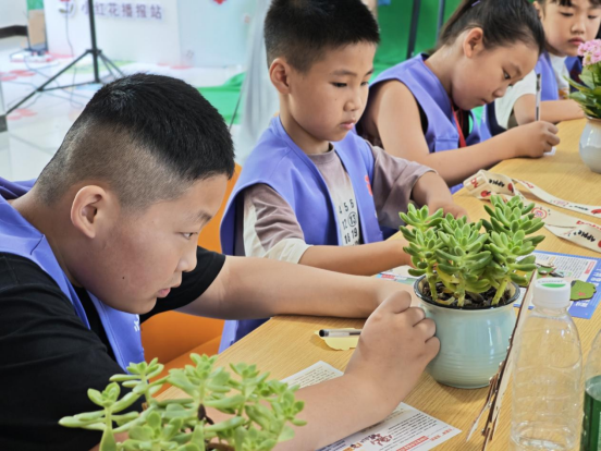 小朋友們?cè)诩议L的陪伴下,興奮地挑選著自己心儀的“植物小搭檔”。當(dāng)選中屬于自己的盆栽后,社區(qū)工作人員會(huì)幫助小朋友們?cè)诨ㄅ枭腺N上寫有他們名字的標(biāo)簽,從此,這盆植物便有了專屬的“小主人”?!斑@是我的多肉啦,我要給它起個(gè)名字叫‘肉肉’!” 一位剛認(rèn)領(lǐng)完植物的小朋友開心地說道,稚嫩的臉上滿是期待。