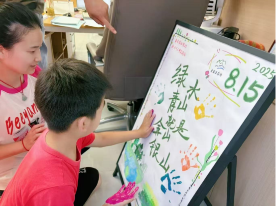 搭建“生態(tài)課堂”,讓暑期假日“動起來”。為了踐行綠色生活方式,培育綠色環(huán)保新風尚,襄安鎮(zhèn)松院村新時代文明實踐站開展“小手掌”傳播“大文明”活動。志愿者用理論+案例結合方式講解生態(tài)環(huán)保知識,組織學生觀看環(huán)保宣傳片,帶領學生開展環(huán)保繪畫。講解“手掌添加畫”的奧秘和技巧,引導孩子們以手掌為筆,發(fā)揮創(chuàng)意思維,共同合作創(chuàng)作。小朋友用稚嫩的小手塑造著快樂,一人一個掌印,印出了繽紛的色彩。在大家的共同努力下一幅幅充滿生機和創(chuàng)意的生態(tài)環(huán)保繪畫完成了。大家看著自己的作品,臉上洋溢著幸福的笑容。