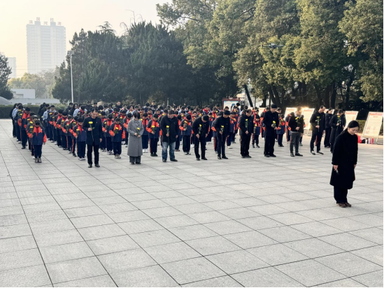 活動(dòng)在莊嚴(yán)肅穆的氛圍中拉開(kāi)帷幕。全體人員列隊(duì)肅立,低頭默哀一分鐘,以此緬懷南京大屠殺死難者和所有慘遭日本侵略者殺戮的死難同胞,緬懷為中國(guó)人民抗日戰(zhàn)爭(zhēng)勝利獻(xiàn)出生命的革命先烈和民族英雄。