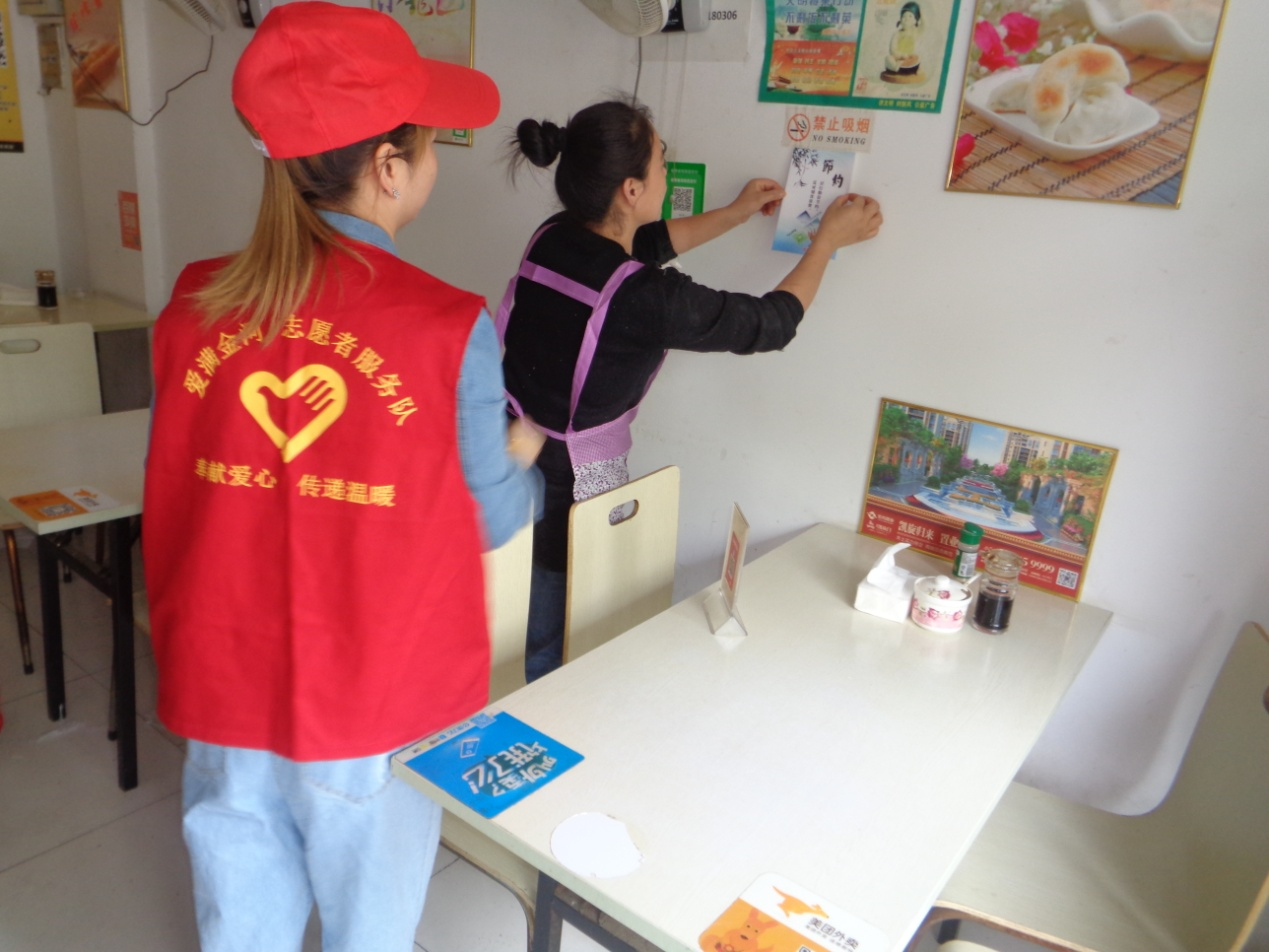加大宣傳教育力度,營造濃厚氛圍。社區(qū)志愿者們深入轄區(qū)門面商戶,來到轄區(qū)的餐飲店,挨家挨戶張貼“公筷公勺”宣傳畫,提醒餐飲店要安排專人每天多消毒、勤打掃,既保護(hù)自己,也是對顧客負(fù)責(zé)。同時向來往的居民發(fā)放《文明餐桌倡議書》《文明健康素養(yǎng)66條》等宣傳手冊,同時倡導(dǎo)廣大居民倡導(dǎo)居民從自我做起,積極參與疫情防治志愿服務(wù)工作,摒棄不衛(wèi)生的生活習(xí)慣,養(yǎng)成科學(xué)合理的健康生活習(xí)慣。