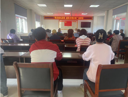 廣泛宣傳發(fā)動,營造濃厚氛圍。通過發(fā)放“移風(fēng)易俗知多少”宣傳單、“十抵制十提倡”宣傳手冊、張貼標(biāo)語海報(bào)和播放“移風(fēng)易俗”主題公益廣告等形式,廣泛宣傳移風(fēng)易俗相關(guān)內(nèi)容要求。抓住重大節(jié)日、節(jié)點(diǎn)號召黨員干部,深入各村(社區(qū))開展移風(fēng)易俗相關(guān)主題宣講活動,引導(dǎo)村民除陋習(xí)、樹新風(fēng),在全鎮(zhèn)形成濃厚宣傳氛圍。
