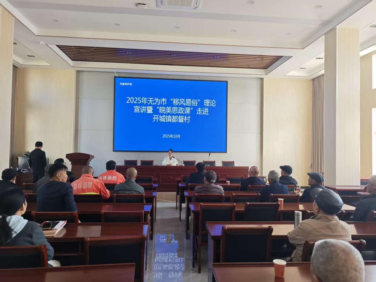 10月23日,無為市“移風易俗”理論宣講暨“皖美思政課”活動走進開城鎮(zhèn)都督村。此次宣講由中共無為市黨校沈敏老師擔任主講,吸引了30余位村民代表、村委會成員及黨員參加。