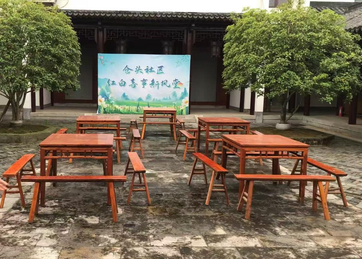紅白喜事新風(fēng)堂里木質(zhì)桌椅質(zhì)樸簡(jiǎn)約,承辦的紅白事沒有了鋪張浪費(fèi),多了真誠祝福與肅穆緬懷。還有那寫滿村規(guī)民約的建筑、承載家風(fēng)的文化陣地,處處彰顯制度與文化的雙輪驅(qū)動(dòng)。