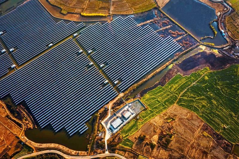 圖為赫店鎮(zhèn)漁光互補景象。