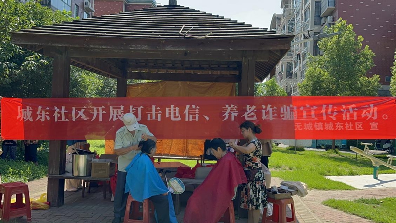 為推進(jìn)反詐宣傳工作走深走實,全面提升廣大群眾防范、識別電信網(wǎng)絡(luò)詐騙的意識和能力。近日,城東社區(qū)結(jié)合愛心義剪活動在頤景花園小區(qū)開展防范宣傳不停歇、筑牢反詐“防護(hù)網(wǎng)”打擊電信養(yǎng)老詐騙宣傳活動。