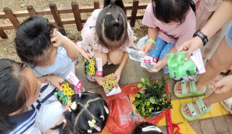 活動(dòng)開始后,志愿者先向孩子們介紹了種植時(shí)需要注意的事項(xiàng)。其中最重要的三要素就是要充足的光照、保持土壤松軟透氣,還有澆水澆濕土面即可。隨后志愿者給小朋友們分發(fā)小鏟子、花種、植物等,讓小朋友們自由挑選。分發(fā)完畢后,小朋友們開會(huì)用小鏟子挖土,小心翼翼地播撒一粒粒種子,給它們澆水,期待著它們的破土而出。經(jīng)過半小時(shí)的種植,看似沒有多大變化的土地,其實(shí)已悄然蘊(yùn)含生機(jī),剩下的就交給時(shí)間讓小花苗慢慢長大吧。