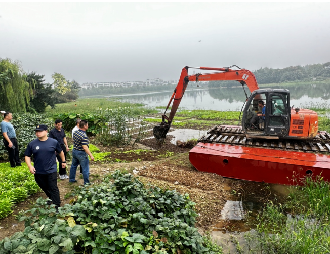 活動中,對環(huán)城河水面漂浮物及岸線垃圾、菜地種植進(jìn)行重點清理.現(xiàn)場,還動用一臺挖掘機,對淤塞溝渠進(jìn)行開挖,清理雜樹雜草。經(jīng)過大家的共同努力,水面的雜草、垃圾等雜物得到了有效控制,凈化了水資源。同時,社區(qū)還加強了對河沿線的日常巡查宣傳,在醒目地段還設(shè)置禁止亂倒垃圾和禁止種菜宣傳牌。