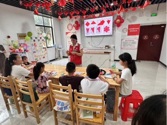 活動(dòng)現(xiàn)場(chǎng)有精彩的非遺剪紙講解,小朋友們深入了解了非遺剪紙的歷史與巧思。大學(xué)生們手把手指導(dǎo)小朋友們動(dòng)手實(shí)踐,親身體驗(yàn)剪紙的樂(lè)趣,在一剪一刀中感受非物質(zhì)文化遺產(chǎn)的獨(dú)特魅力。隨著開(kāi)班儀式的結(jié)束,一場(chǎng)充滿活力的暑期成長(zhǎng)之旅正式拉開(kāi)序幕。