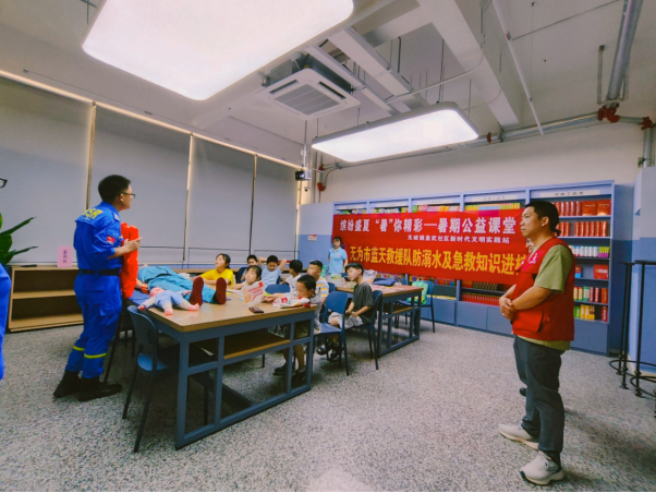 “跟著叔叔學憋氣,原來溺水自救這么有講究!”在社區(qū)“防溺水暑期公益課堂”上,孩子們圍著藍天救援隊的志愿者學得不亦樂乎。社區(qū)黨總支打造“線上宣傳+線下課堂”雙陣地:線上通過居民微信群推送防溺水短視頻、自救指南等內容,覆蓋居民 2300 余人;線下開展“防溺水暑期公益課堂”,通過情景模擬、有獎問答等方式增強宣傳實效,80余名少年兒童在趣味互動中掌握自救知識。針對留守兒童群體,皇武社區(qū)“悅銀齡”志愿服務隊和“愛心媽媽”開展“一對一”陪伴教育,用陪伴筑起情感防線,讓安全意識像夏日藤蔓般悄然生長。