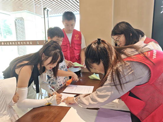 活動尾聲時,工作人員為學(xué)員發(fā)放啟航禮包、佩戴專屬花小渡徽章,象征他們正式成為學(xué)堂一員。全體合影定格瞬間后,隨著“放飛夢想”的指令,孩子們將心愿紙飛機(jī)拋向天空,五彩弧線承載著啟航的夢想。