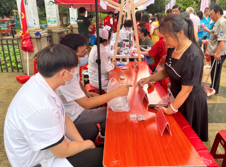 醫(yī)務(wù)人員為居民提供用藥指導(dǎo)