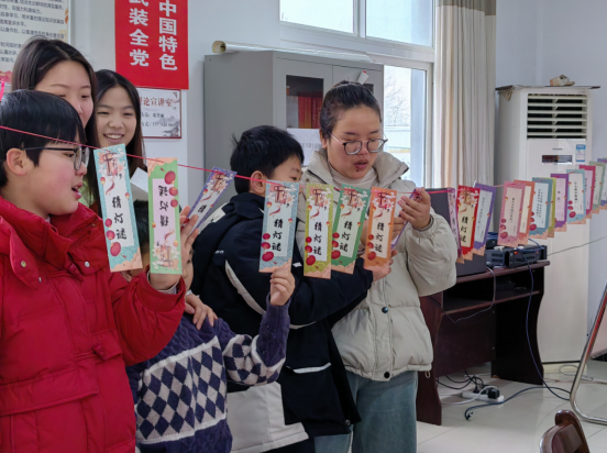 活動現(xiàn)場,一串串“猜燈謎”書簽高高掛,燈謎內(nèi)容貼近生活,又充滿文化色彩,生動有趣,兼具娛樂性和知識性。大家在一番苦思冥想下共同領(lǐng)略語言文化的無窮奧妙,一條條謎底被大家紛紛猜中,每個人手里都拿著幾條猜出來的燈謎,迫不及待地和身邊人交流分享。