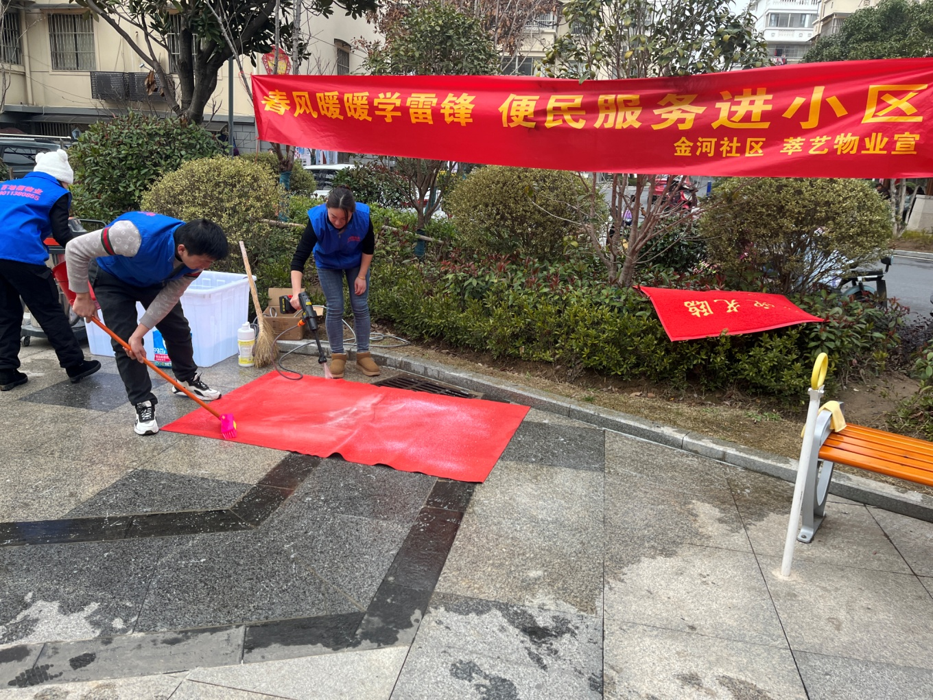 清洗區(qū)域,居民們拿著自家的地毯來(lái)清洗,物業(yè)人員發(fā)揚(yáng)不怕苦不怕累的精神認(rèn)真清洗,不放過(guò)每一個(gè)死角,不留一處污漬。