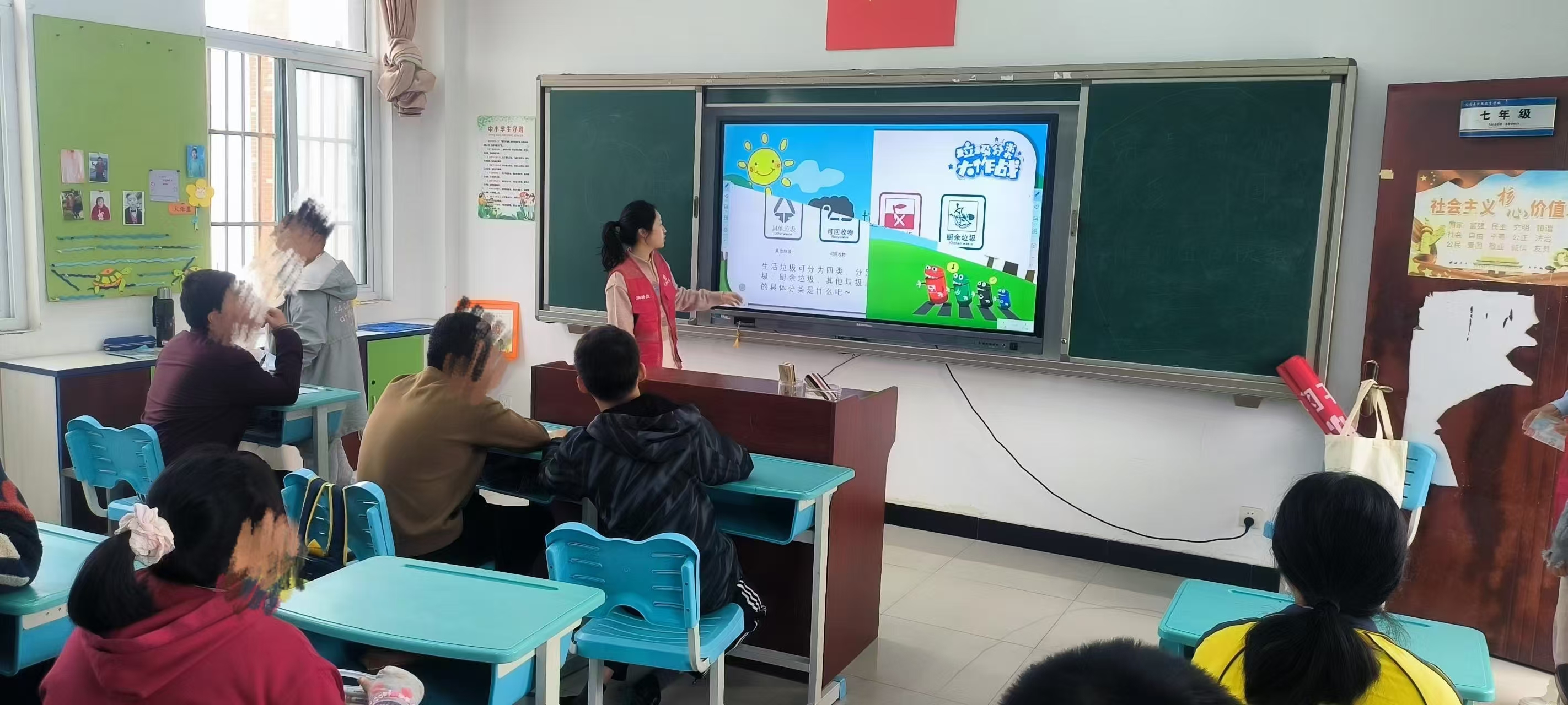 活動中志愿者通過圖文并茂的方式,向孩子們詳細介紹了垃圾分類的重要性、分類標準和投放方法。他們結合生動的案例和實用的技巧,深入淺出地講解了垃圾分類對于保護環(huán)境、節(jié)約資源的重要意義。同時,還通過提問和互動的方式,激發(fā)了孩子們對垃圾分類的興趣和熱情,引導他們積極參與垃圾分類行動。