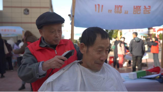 在義剪攤位,一張凳子、一套工具,一個(gè)簡(jiǎn)易的“理發(fā)廳”就地開張。理發(fā)師熱情、細(xì)心地根據(jù)居民的需求理出適合他們的發(fā)型,并親切地與群眾拉家常,現(xiàn)場(chǎng)洋溢著溫馨的氛圍。