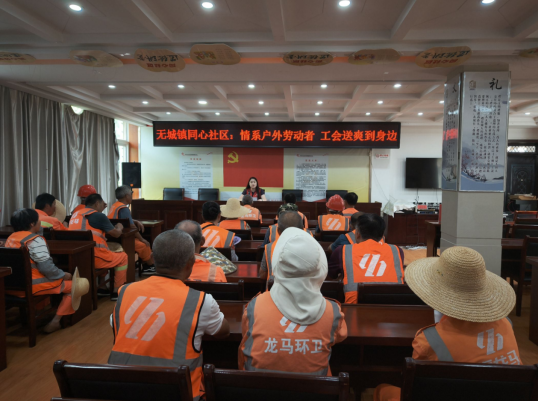 無(wú)城連日來(lái)高溫天氣不斷,環(huán)衛(wèi)工人為了城市的整潔,一直在街頭巷尾的環(huán)衛(wèi)工人堅(jiān)守崗位。為保障環(huán)衛(wèi)工人們的身體健康,7月17日上午,同心社區(qū)工會(huì)組織開(kāi)展“夏日送清涼”活動(dòng),為辛勤的環(huán)衛(wèi)工人們送去工會(huì)的關(guān)懷。