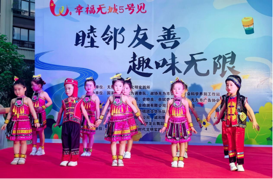 活動(dòng)在無為市濡江情音韻合唱團(tuán)文華樂隊(duì)的民樂合奏中拉開帷幕?!兜氐缿?zhàn)》以嗩吶、鑼鼓的激昂旋律復(fù)刻抗戰(zhàn)歷史,《采茶舞曲》用竹笛、揚(yáng)琴的清脆音色勾勒江南茶鄉(xiāng)風(fēng)光,兩首曲目剛?cè)岵?jì),讓紅色文化與民間藝術(shù)深度融合。隨后,圓夢龍?jiān)莆璧戈?duì)的《五星紅旗》舞出家國情懷,陶行知幼兒園、藍(lán)鼎 ABC 幼兒園的孩子們分別帶來《童年叮叮當(dāng)》《茉莉花》,稚嫩歌聲與靈動(dòng)舞姿傳遞出童真美好;無為市濡江情韻合唱團(tuán)則以合唱形式喚起紅色記憶、致敬平凡奉獻(xiàn)者。國家統(tǒng)計(jì)局無為調(diào)查隊(duì)帶來的脫口秀《鄰里那些事》更是別出心裁,通過“網(wǎng)店店主吐槽統(tǒng)計(jì)調(diào)查”的生活化劇情,讓居民在笑聲中掌握統(tǒng)計(jì)知識(shí),實(shí)現(xiàn)“普法于樂”。