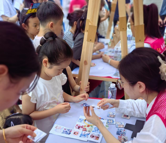 最熱鬧的當(dāng)數(shù)鄰里集市,8個(gè)特色攤位讓居民“逛得盡興、玩得投入”?!班徖锕怖L”長卷畫前,居民們手持畫筆,將社區(qū)標(biāo)志性建筑、鄰里互助場景繪于紙上,共同勾勒“我們的社區(qū)故事”“磁聚美好親子創(chuàng)藝”“珠連童趣手作傳情”攤位,家長與孩子合作制作冰箱貼、串珠飾品,在動(dòng)手過程中增進(jìn)親子默契;國家統(tǒng)計(jì)局無為調(diào)查隊(duì)設(shè)置的“統(tǒng)計(jì)法治盲盒”“統(tǒng)計(jì)拼圖大挑戰(zhàn)”“我和統(tǒng)計(jì)合個(gè)影”打卡墻,讓居民在抽盲盒、拼拼圖、拍照片的互動(dòng)中,輕松學(xué)習(xí)統(tǒng)計(jì)知識(shí);“法治進(jìn)社區(qū)”咨詢臺(tái)安排專業(yè)人員,為居民解答婚姻家庭、勞動(dòng)糾紛等法律難題,并發(fā)放針對(duì)性普法資料;“平安‘袋’言人”手繪區(qū),居民在帆布袋上繪制交通安全、防溺水、反電詐畫面,將安全警示融入創(chuàng)意創(chuàng)作,實(shí)用又有意義。