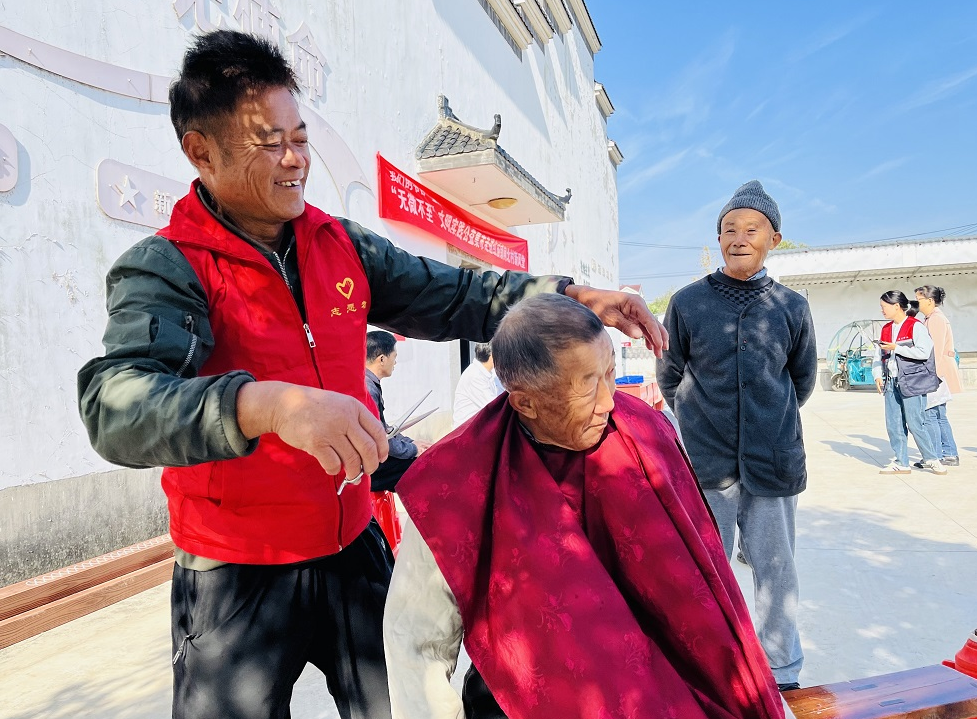集市雖小,卻“五臟俱全”,六個功能各異的愛心攤位前人頭攢動,秩序井然。義剪攤位前,理發(fā)師志愿者手法嫻熟,為老人們理出清爽利落的新發(fā)型;義診攤位旁,醫(yī)護(hù)志愿者耐心地為老人們測量血壓,提供健康咨詢,叮囑秋冬季節(jié)養(yǎng)生注意事項;義修攤位上,志愿者能工巧匠們免費維修小家電,讓損壞的家用物品“重獲新生”;手機義清服務(wù)備受青睞,志愿者們幫助老人清理手機內(nèi)存、優(yōu)化系統(tǒng),并耐心講解智能手機的基本操作;反電詐宣傳與《法治宣傳教育法》普法宣傳攤位前,來自紅廟鎮(zhèn)人大、紅廟派出所、紅廟司法所的工作人員用通俗易懂的語言向老人們揭秘常見詐騙手法,普及《法治宣傳教育法》知識,為老人們的“錢袋子”和合法權(quán)益筑起一道堅固的安全防線。