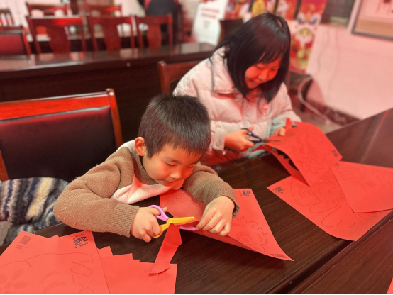 活動現(xiàn)場暖意融融,社區(qū)工作人員提前備好大紅宣紙、剪刀、刻刀、膠水等工具?;顒又?,志愿者為大家講解剪紙的歷史淵源與文化寓意,居民們熱情高漲,紛紛拿起剪刀嘗試創(chuàng)作,孩子們眼神專注,在家長的幫助下剪出稚嫩卻充滿童趣的圖案。