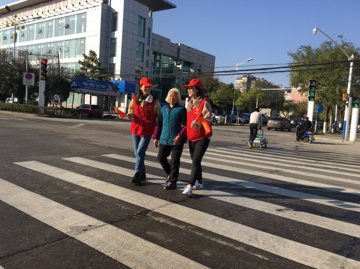 在活動中,社區(qū)志愿者們頭戴小紅帽,身穿紅馬甲,在寒冷的冬日下,在轄區(qū)內路口的開展文明交通勸導志愿服務活動,義務疏導交通,為行人提供幫助?;顒又?,社區(qū)的志愿者們,始終以飽滿的熱情和真誠勸導行人文明出行,對違反道路交通規(guī)則的人耐心的予以勸導制止。偶遇行動不便的老人,便細心的攙扶過馬路,老人對社區(qū)的志愿者們豎起大拇指,連聲道謝……