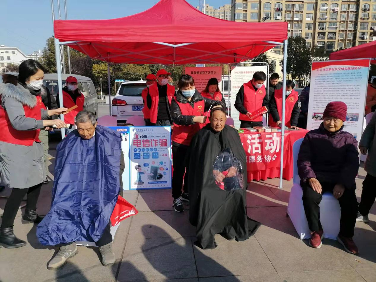 在進(jìn)行志愿宣傳活動之余,同心社區(qū)的志愿者們還開展了義務(wù)理發(fā)活動,為在場居民提供免費(fèi)服務(wù),讓到場居民拍手叫好。