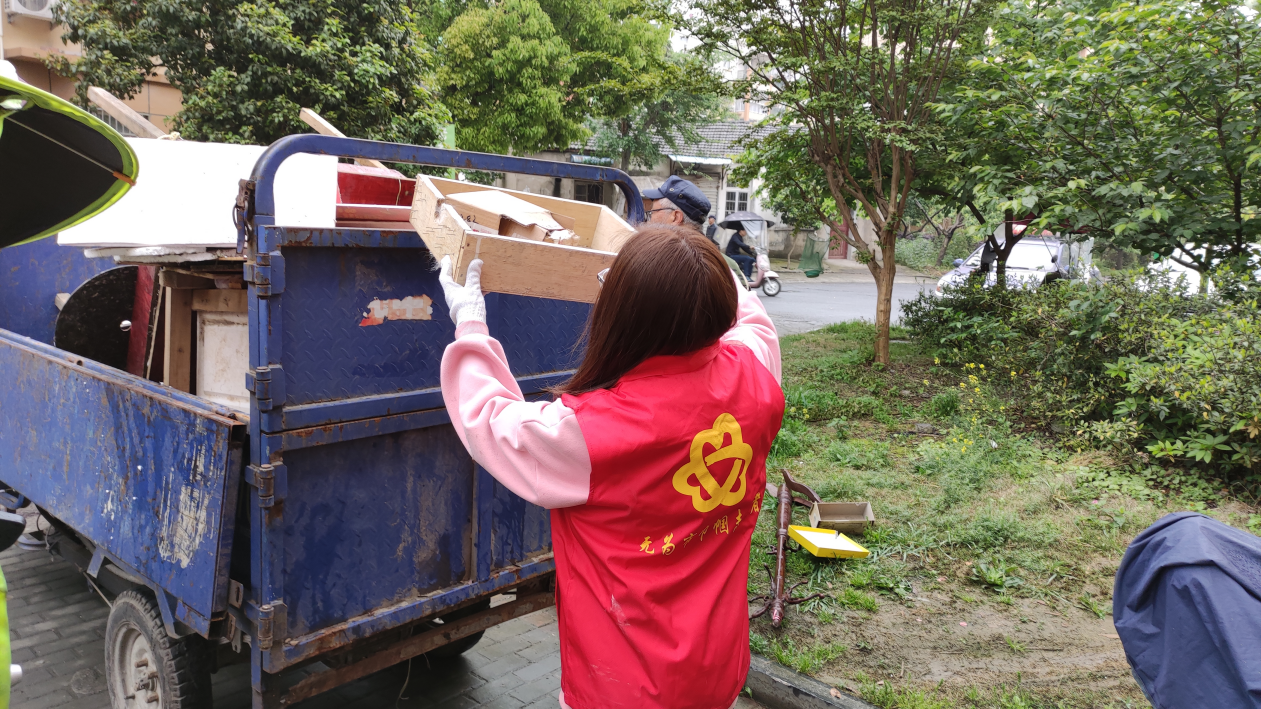活動現場,樓道中堆滿了各種各樣的生活雜物,影響了小區(qū)衛(wèi)生和居民的生活環(huán)境。志愿者們有的將各種堆放在樓梯的垃圾搬運到樓外,有的將垃圾放在垃圾桶里。大家分工協作,發(fā)揚吃苦耐勞的品質,將小區(qū)樓道清理死角的垃圾清理干凈。為小區(qū)居民營造出干凈美觀的公共衛(wèi)生環(huán)境。