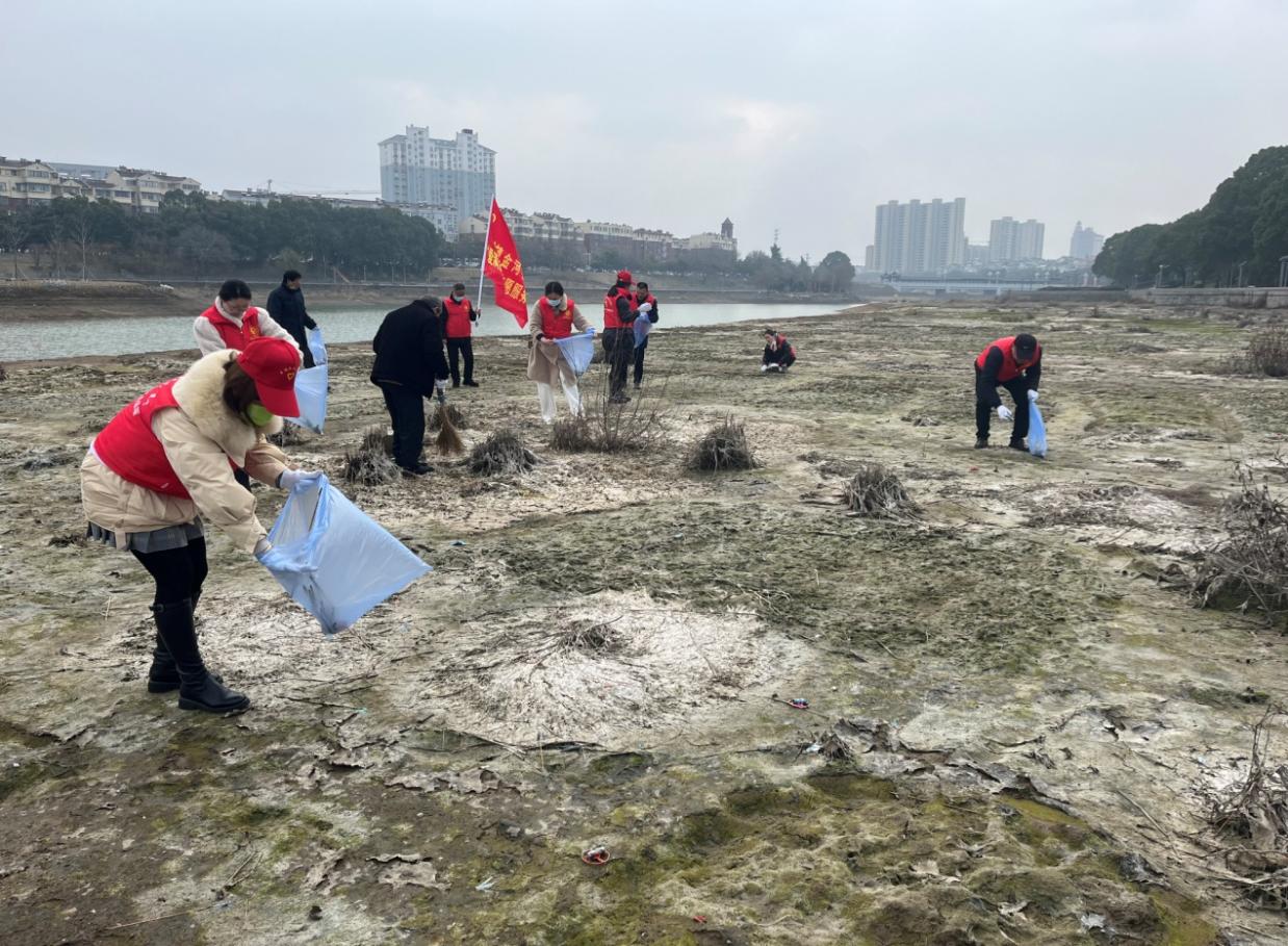 志愿者清理環(huán)城河白色垃圾