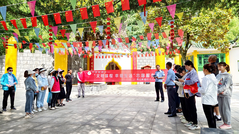 今年5月19日是第13個“中國旅游日”,當天上午,無為市新時代文明實踐志愿服務總隊聯(lián)合蜀山鎮(zhèn)新時代文明實踐所和黃姑社區(qū)新時代文明實踐站在泊山洞景區(qū)開展“文明旅程 幸福生活”文明實踐日活動。