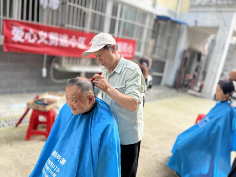 便民服務,愛心相伴。城東社區(qū)在高齡老人群體居多的小區(qū)開展關愛老年人愛心義剪志愿活動。滿足了老年人的生活需求,解決了一些行動不便老年人的“頭等”大事。在志愿者和現(xiàn)場工作人員的精心組織下,老人們有序地排隊等待理發(fā),剪發(fā)過后老人們臉上露出了滿意的笑容,