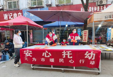 為進(jìn)一步加大無為市“安心托幼”暖民心行動宣傳力度,提高暖民心行動知曉率,切實(shí)解決家長“接娃難”問題,讓“幼有所托”成為惠民常態(tài),更讓“安心托幼”溫暖民心。高溝鎮(zhèn)中心幼兒園教育集團(tuán)積極響應(yīng)號召,全力推進(jìn)安心托幼工作。近日,高幼教育集團(tuán)在龍庵社區(qū)菜市場內(nèi)開展“安心托幼——無為市暖民心行動”志愿宣傳活動。高幼教師、家委會代表和學(xué)生代表參加了此次活動。