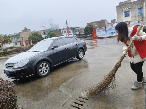 圖為群英村新時(shí)代文明實(shí)踐志愿者鏟除道路沿線積雪。