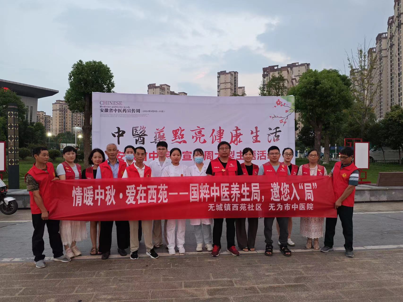 月到中秋分外明,佳節(jié)濃情暖人心。為傳承中華民族優(yōu)秀傳統(tǒng)節(jié)日文化,感受中醫(yī)藥文化的魅力,增強家國情懷。9月14日晚,無為市無城鎮(zhèn)西苑社區(qū)新時代文明實踐站聯(lián)合無為市中醫(yī)院在城南公園開展“情暖中秋,愛在西苑——國粹中醫(yī)養(yǎng)生局,邀您入局”活動。