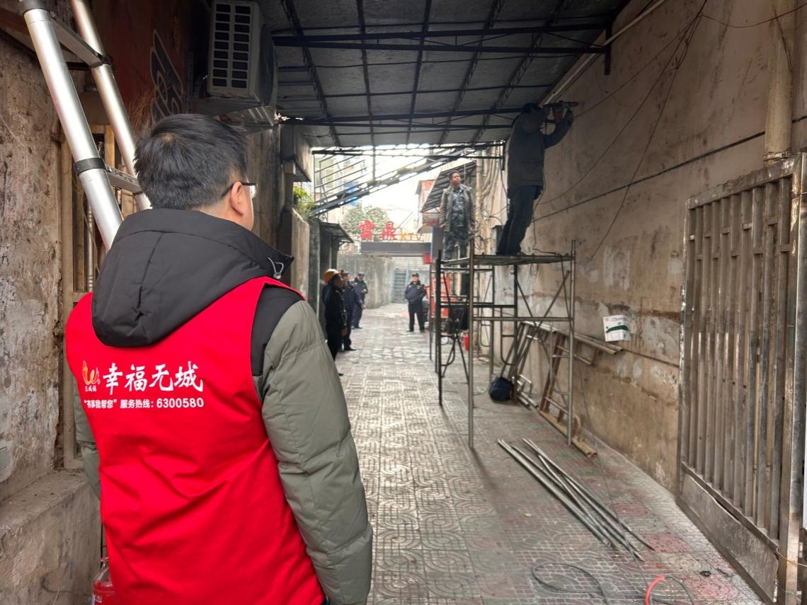 多方聯(lián)動現(xiàn)場議事。商貿(mào)中心過道上搭建的鐵棚因年久失修、結(jié)構(gòu)不穩(wěn)等問題,被居民多次反映存在安全隱患。在接到居民反映后,五華社區(qū)高度重視,迅速組織并聯(lián)合多個部門共同前往現(xiàn)場進行實地查看。在現(xiàn)場查看議事中,各部門負責人對鐵棚的安全隱患進行了詳細的勘查和記錄,并就如何拆除鐵棚、確保居民安全等問題進行了深入的討論。同時,社區(qū)工作人員也積極與居民溝通,了解他們的訴求和意見。